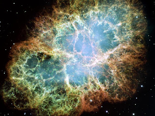 La Nebulosa del Cangrejo, es el resultado de una supernova que fue observada por los cronistas que habitaban la Tierra en el año 1054, está llena de filamentos misteriosos que no sólo son tremendamente complejos, sino que además parece que tienen menos masa que los expulsados en la supernova original y una mayor velocidad de lo esperado de una explosión libre. La Nebulosa del Cangrejo abarca una extensión en el espacio de unos 10 años luz. En el centro de la nebulosa, se encuentra un púlsar: una estrella de neutrones más masiva que el Sol, pero con sólo el tamaño de una pequeña ciudad. El Púlsar del Cangrejo rota unas 30 veces cada segundo. Imagen: NASA, ESA, J. Hester, A. Loll (ASU) Fuente: NASA